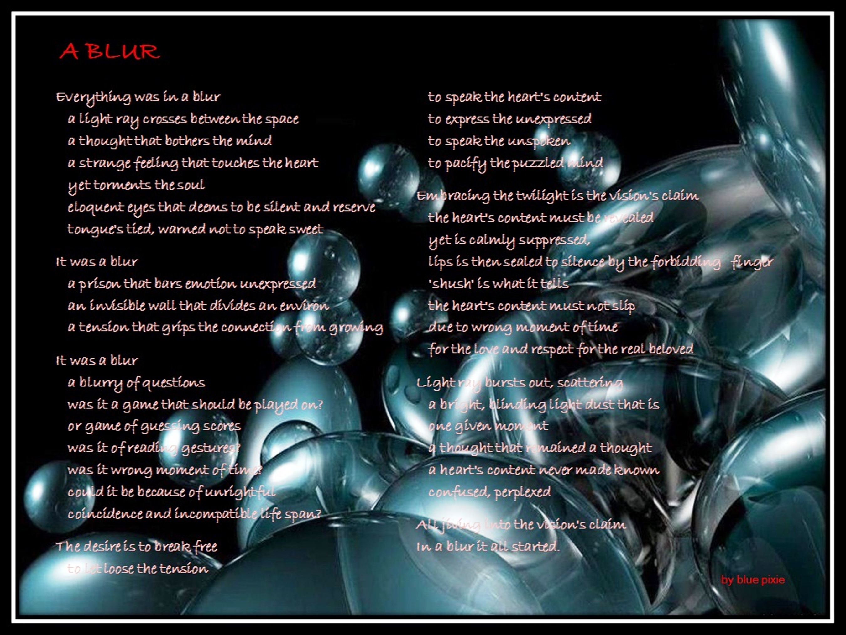 For my readers, enjoy this wonderful poem by Blue Pixie…